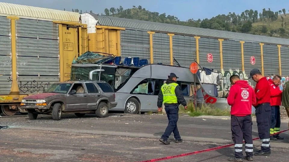 Tren embiste a camión de pasajeros en Atlacomulco; hay 8 muertos